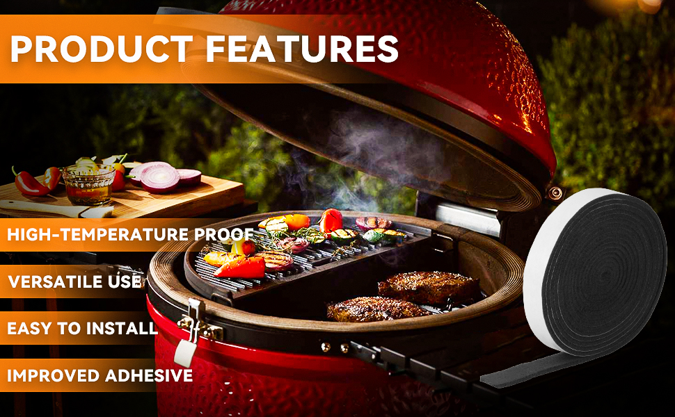 The onlyfire High Heat Gasket Replacement is a 15ft long, 1-inch wide, high-temp fiber gasket with peel & stick adhesive designed to restore airtight seals on popular kamado-style grills like Big Green Egg and Kamado Joe. It prevents heat and smoke leaks, enhancing cooking performance and extending grill life, with easy installation and broad compatibility.