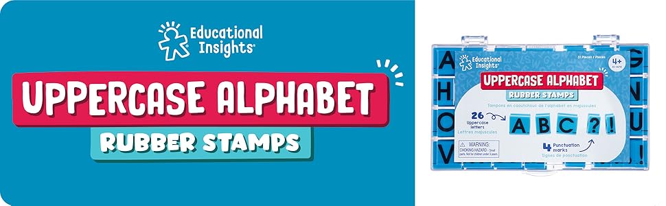 Alphabet Rubber Stamps Uppercase, 5/8", Ages 4 and Up, (30 Pieces - 26 Letters and 4 Punctuation Marks)