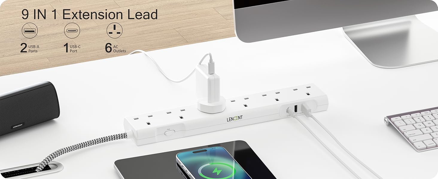 Lencent Extension Lead With Usb C Port 3250w 13a 6 | Desertcart South Korea