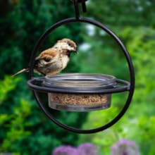 Monarch Abode 18048 Hanging Zazu Bird Feeder with Clear Glass Bowl, Perch, Outdoor Decor for Garden Backyard Patio and Deck