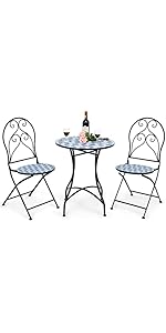 Costway 3 Piece Folding Patio Bistro Set Acacia Wood Table | Desertcart South Korea
