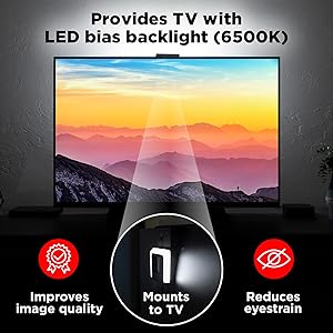 UltraProTV LED Backlight Bracket, BIAS Light 6500K White, Improves Image Quality, Reduces Eyestrain, Easy Install No Adhesives or Clips, For TVs Monitors 19 to 70 inch, USB Powered, 58664 , Black