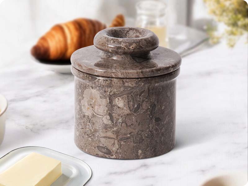 Butter Dish Cover Pot Handmade Marble Oceanic Gray Butter Storage Crock Keeper for Kitchen - Non Ceramic Non Plastic - Used as Utensil Holder and Butter Churn Deep Covered Kitchenware Jar Container