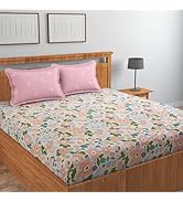 The VOMZER 320 TC Cotton Feel King Size Fitted Bedsheet set combines a high thread count with breathable, shrink-resistant fabric and an all-around elastic fit designed for mattresses up to 10 inches thick. This set includes a fitted sheet and two pillow covers in a stylish white floral pattern, delivering both comfort and elegance for a refined bedroom experience.