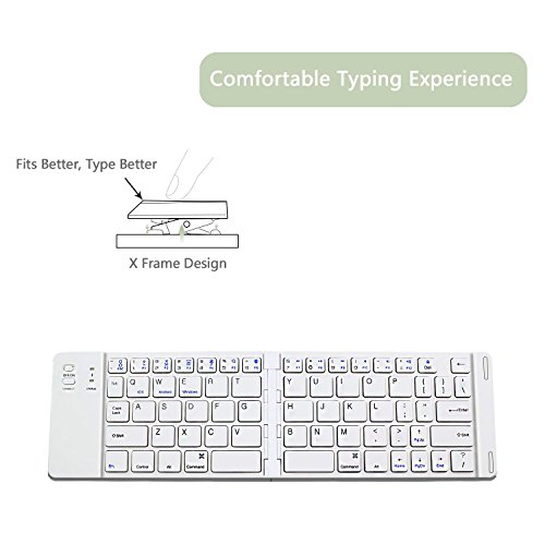 - Foldable design: Pocket Size and foldable design. Keyboard Foldable Size: 14.5*8.4*1.9cm, Keyboard Open Size: 29.3*8.4*9.5cm. Almost the same size as iPhone 6 plus after being folded.