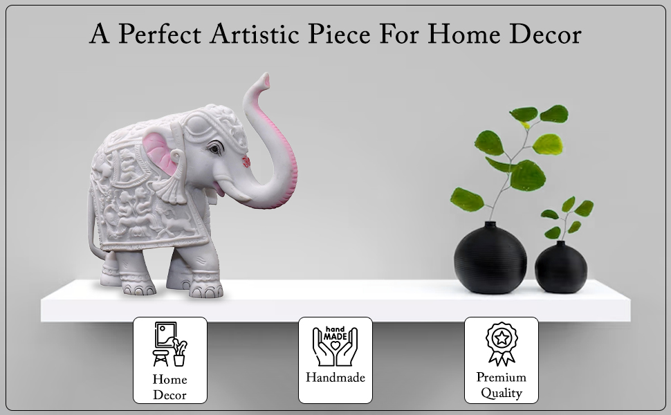 This 8x9x3 inch white elephant showpiece, handcrafted from premium marble and resin, weighs approximately 2 kg and embodies Indian heritage and Vastu Shastra principles. Designed to bring success, protection, and positive energy, itβs a striking decorative item perfect for home or office, and an ideal gift for special occasions.