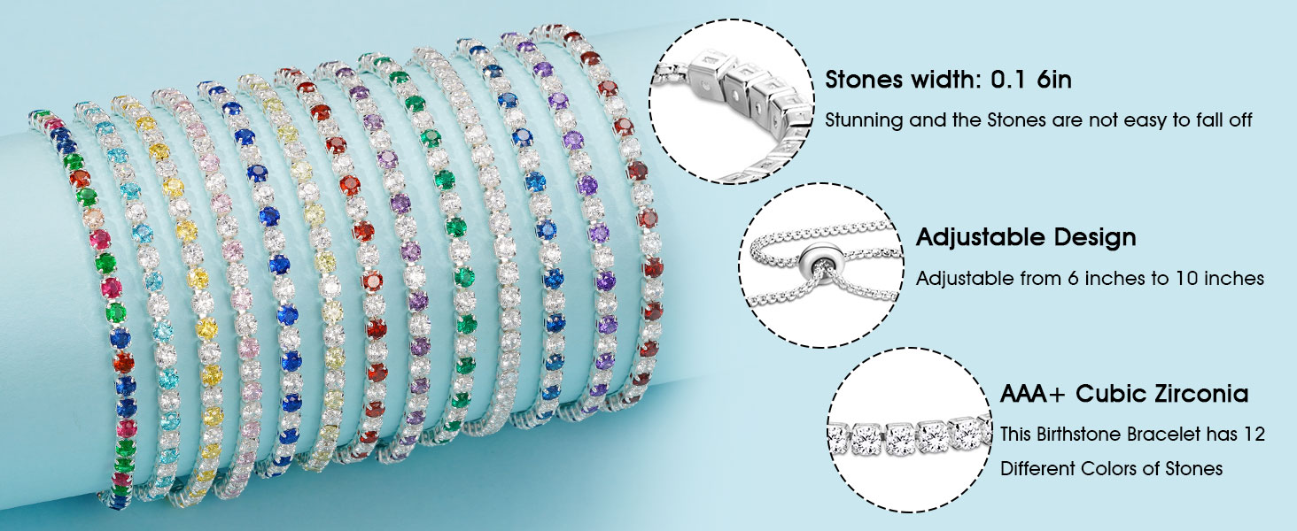 Silver Bracelet for Womens Silver Tennis Birthstone Dainty Crystal Zirconia Bracelets Birthday Christmas Valentine's Day Jewellery Gift for Mum Sisters Girlfriend