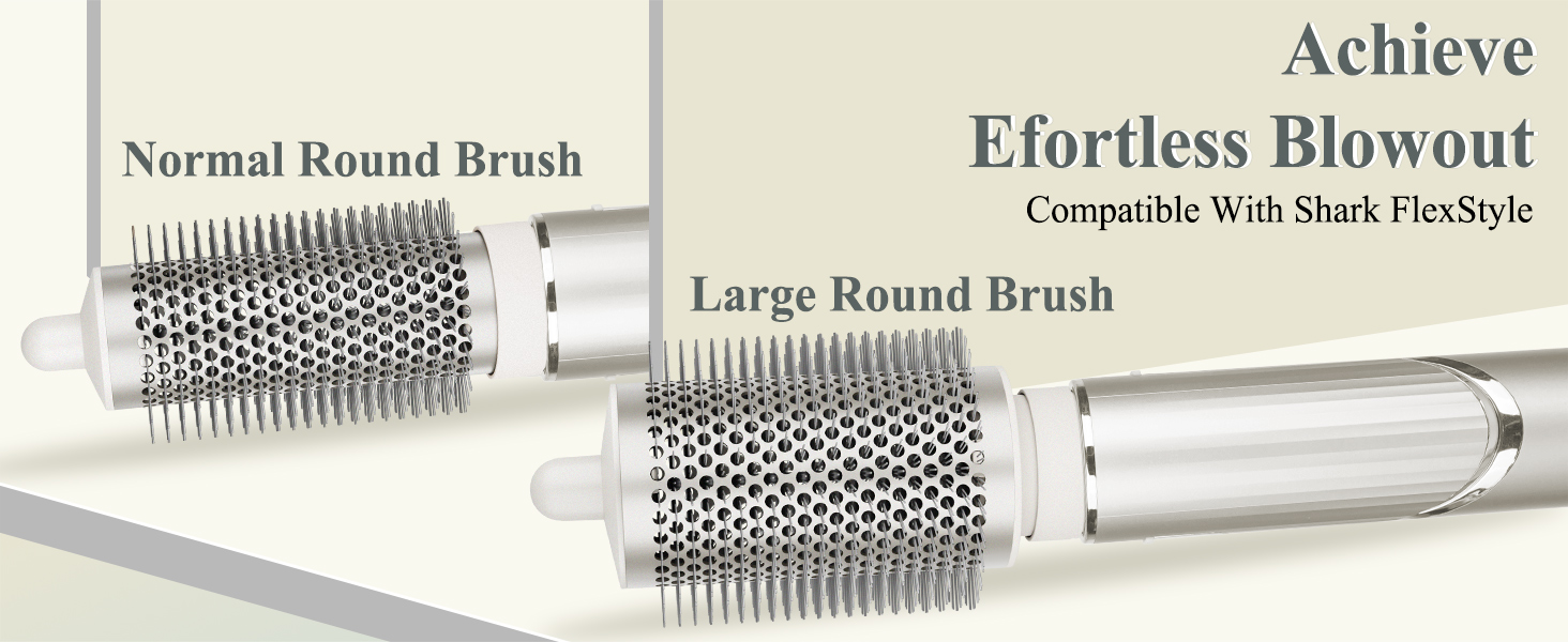 This large round brush attachment is designed exclusively for Shark FlexStyle blow dryers, featuring a 3-inch diameter for maximum root lift and volume. Its tightly spaced teeth speed up drying time, while premium bristles reduce frizz and enhance shine. Suitable for all hair types, it transforms everyday styling into a professional experience with quick, smooth results.