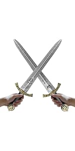 This 2-piece set of 18.9-inch plastic Roman swords features detailed vintage-style engraving and is crafted from durable, lightweight plastic. Designed with safety in mind, the swords have rounded tips and smooth edges, making them perfect for kids’ role-play, Halloween costumes, school plays, and themed parties.