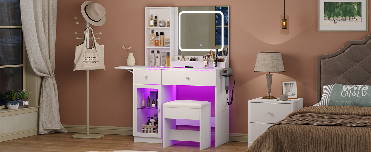 35 Vanity Desk With Led Mirror Rgb Lighted Makeup Vanity | Desertcart South Korea